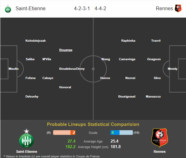 Rennes could be without five players through injury when they face Saint-Etienne on Thursday night.
